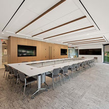 This project involved the complete renovation and repurposing of a vacant tenant space into a flexible-use conference center. Located in Arlington, VA, the 3,500 SF space now includes restrooms, a pantry, coffee bar, and catering prep area. Wood veneer details throughout add warmth and invite contrast to the cool-tone, modern design, which features an operable partition, radius flooring transitions, and an extensive, high-end lighting package.